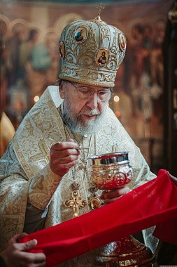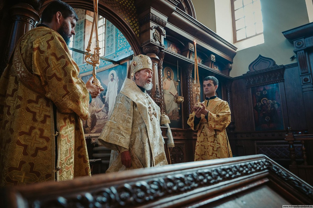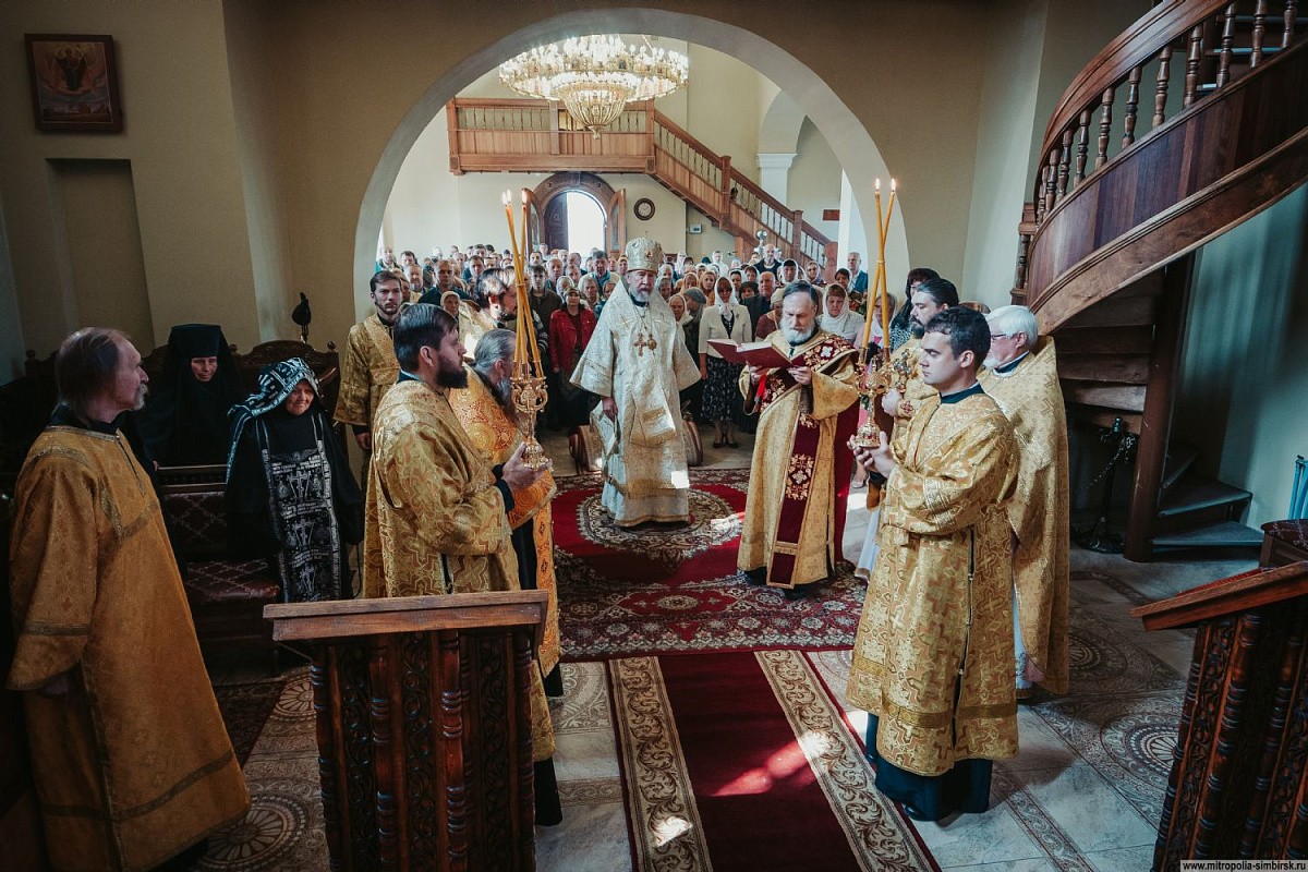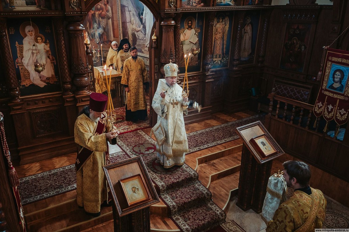 Архипастырю сослужили секретарь Архиерейского совета Симбирской митрополии иеромонах Филарет (Кузьмин) и духовенство обители.