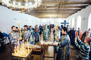 За Литургией молились старшая сестра Спасского архиерейского монахиня Сергия (Вотрина) и насельницы возрождающегося монастыря.
