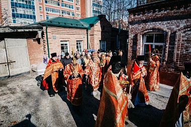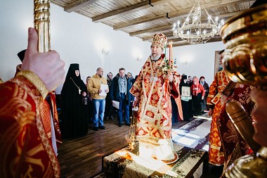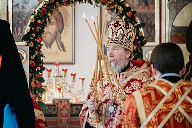 За Литургией архипастырю сослужили ключарь Спасо-Вознесенского собора протоиерей Дмитрий Савельев, секретарь Архиерейского совета Симбирской митрополии иеромонах Филарет (Кузьмин) и духовенство обители.