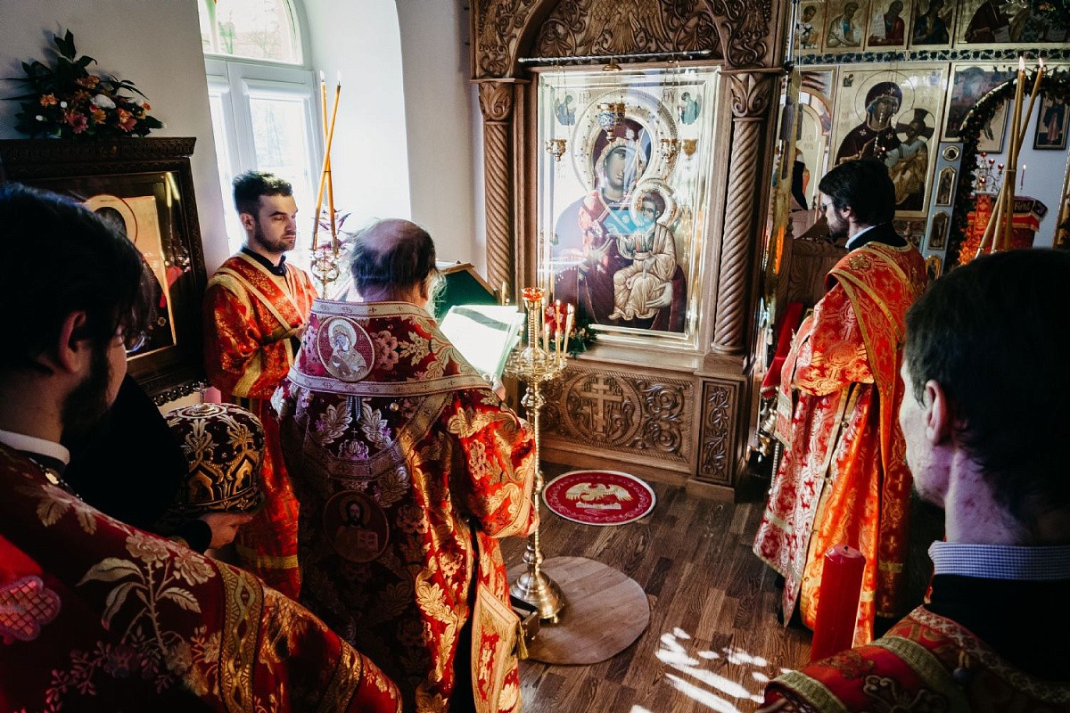 «Христос воскресе! Дорогие братья и сестры! Дорогая матушка! Третий день Пасхи посвящен празднованию Царицы Небесной в честном образе Ее Иверском. Богородица, как никто другой, переживала скорбь у Креста Господня. Совершая празднование Иверской иконе Божией Матери, мы невольно вспоминаем, как Она явилась на горе Афонской. Божия Матерь также была гонима, лик Пречистой был прободен копьем воина. Но Царица Небесная не отвернулась от рода христианского. Она всегда пребывала с нами и будет пребывать до скончания века. Вместо того чтобы обрушить гнев на мир, который гнал Ее Сына и гнал Ее, Она проявляет милость, приближается к горам Афона и становится охранительницей веры Христовой, охранительницей того учения, которое принес на землю Господь и Спаситель наш. Мы должны благодарить Матерь Божию за то, что Она, несмотря на все наши греховные поступки, несмотря на всю нашу жизнь греховную, прощает нас, молится за нас перед Сыном Своим и Богом. От нас требуется, чтобы мы, невзирая ни на что, просили Господа укрепить нас. Своими силами человек не может спастись. Мы вручаем себя водительству Божию и водительству Его Пречистой Матери, Которая является Вратарницей, каждому человеку отверзающей двери райские.