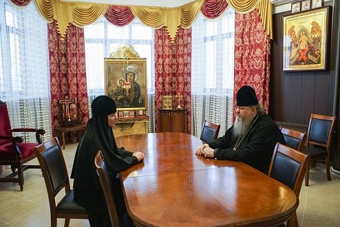 Встречу посвятили вопросам развития духовной жизни в обители и благоустроения комплекса монастырских зданий. Сейчас прорабатывается возможность завершения строительных работ в соборе в честь святителя Николая Чудотворца.