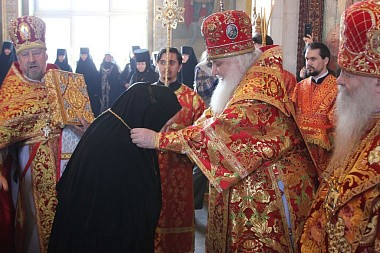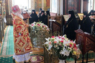За богослужением молилась настоятельница обители игумения Зинона (Деева) с сестрами монастыря и игумения Арсения (Семенова), настоятельница Богородице-Тихоновского монастыря с. Тюнино.