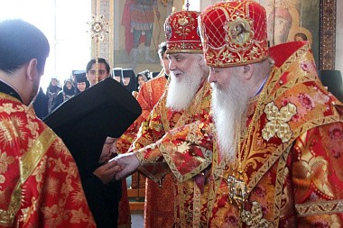 На малом входе на настоятельницу обители игумению Зинону по благословению Святейшего Патриарха Московского и всея Руси Кирилла был возложен крест с украшениями за усердное служение Церкви Христовой и в связи с памятной жизненной датой.