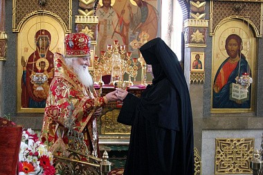 В свою очередь, игумения Зинона поприветствовала владыку Арсения и поблагодарила Его Высокопреосвященство за совершенное богослужение и внимание к обители и просила передать благодарность Святейшему Патриарху за высокую церковную награду.