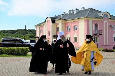 В монастырском храме святых первоверховных апостолов Петра и Павла Его Высокопреосвященству сослужил секретарь епархии иеромонах Николай (Белозеров), клирик Спасо-Преображенкого собора иерей Алексей Шарапа.