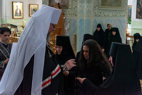 Две послушницы приняли иноческий постриг с именами в честь преподобномученицы Евдокии Илиопольской и в честь преподобной Марины Македонской.