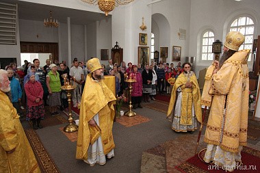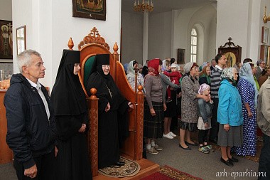 По окончании Литургии Владыка посетил монастырские строения в Суре, настоятельница обители игумения Митрофания (Миколко) рассказала архипастырю о том, как идет восстановление святынь на родине святого праведного Иоанна Кронштадтского.