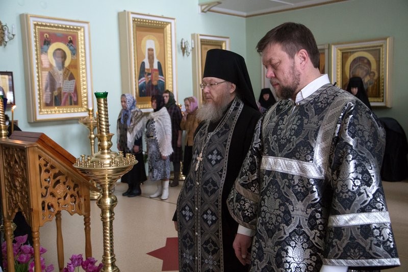 По завершении богослужения архипастырь поздравил насельниц и прихожан с приближающимися праздниками Благовещения и Входа Господня в Иерусалим, пожелал помощи Божией в преодолении последних дней Великого поста и Страстной седмицы.