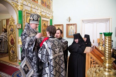 Его Высокопреосвященству сослужили клирик Казанского кафедрального собора г. Читы иерей Димитрий Попеко и клирик обители иеромонах Алипий (Федотов).