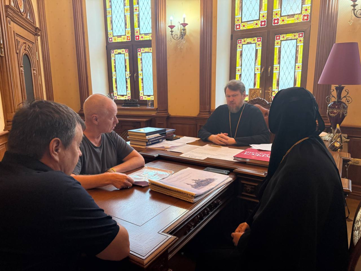 Были рассмотрены первоочередные планы по восстановлению пострадавшего Свято-Иверского храма и завершению строительства здания монастырского корпуса.