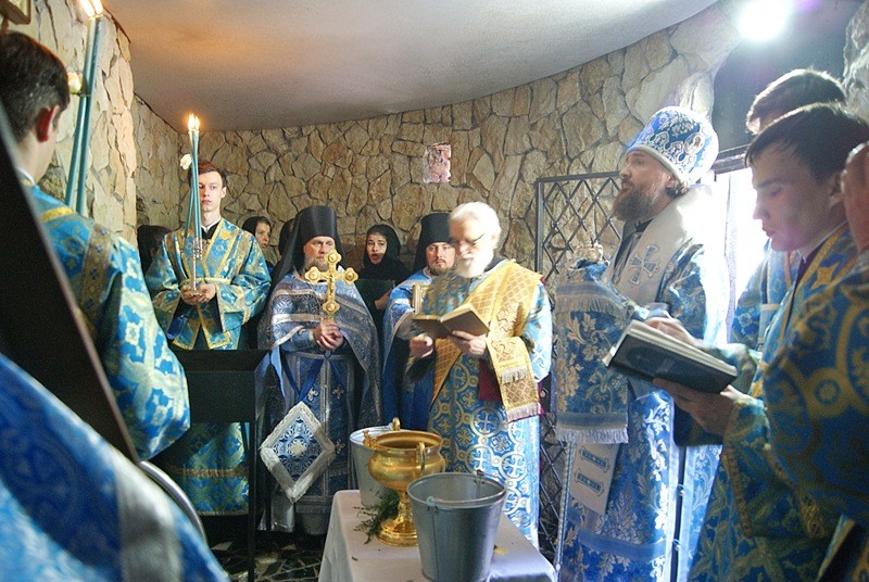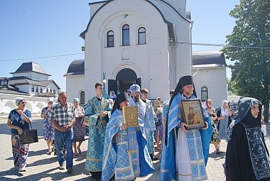 По окончании Литургии состоялся крестный ход с пением тропаря празднику. В часовне у купели митрополит Григорий совершил водосвятный молебен.