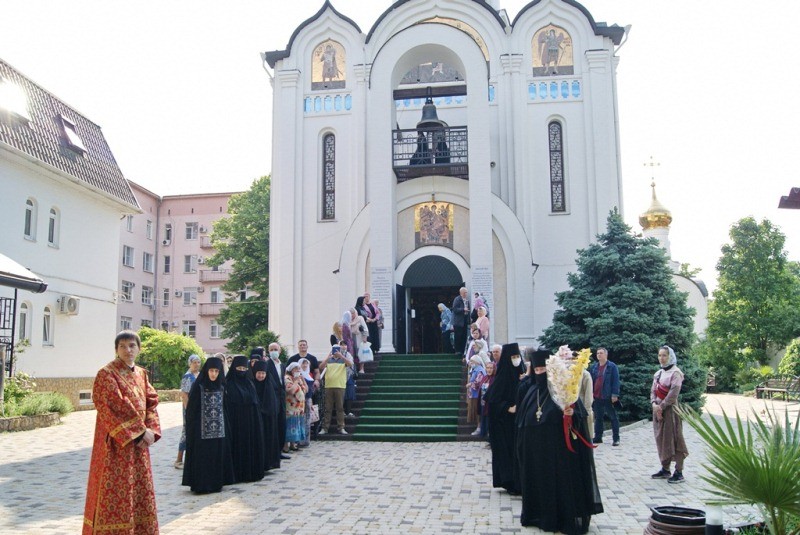 На службе молились игумения Неонилла (Кузьмина) с насельницами обители, прихожане из разных микрорайонов Краснодара и пригородов, пациенты краевого онкологического диспансера, представители кубанского казачества, благодетели и трудники обители.