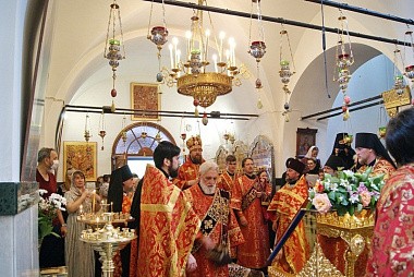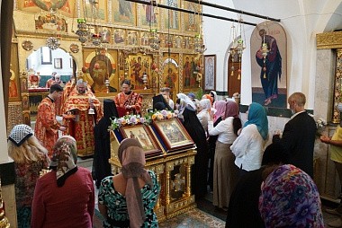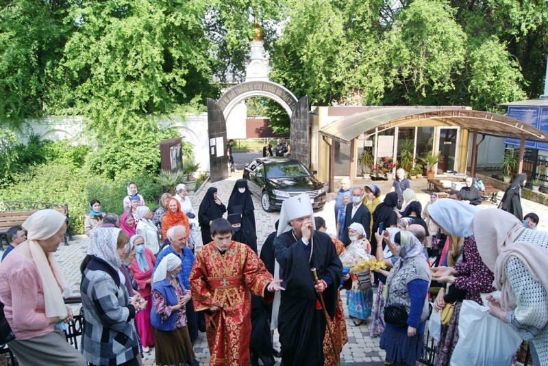 Это был первый визит нового митрополита в женский монастырь. Его Высокопреосвященству сослужили клирики монастыря: иеромонахи Тихон (Орлов), Вячеслав (Мишарин), Серафим (Кузнецов), Вениамин (Комоликов), иереи Никифор Некрылов и Владимир Зыков. Диаконский чин возглавил протодиакон Сергий Мрачко.