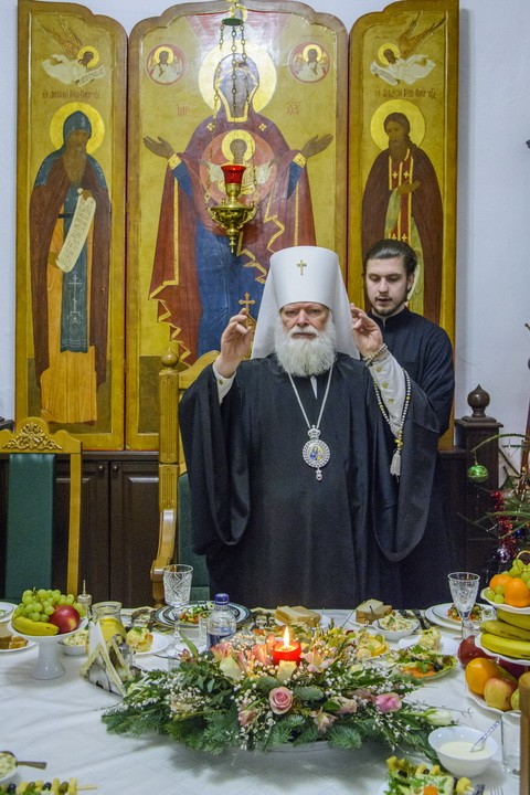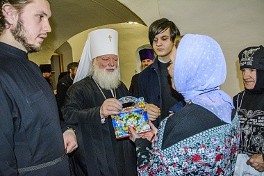По окончании Божественной литургии владыка митрополит возглавил праздничное славление празднику Рождества Христова, в завершение которого были провозглашены традиционные многолетия.