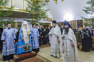 Его Высокопреосвященству сослужили духовник обители архимандрит Гермоген (Муртазов) и местное духовенство.