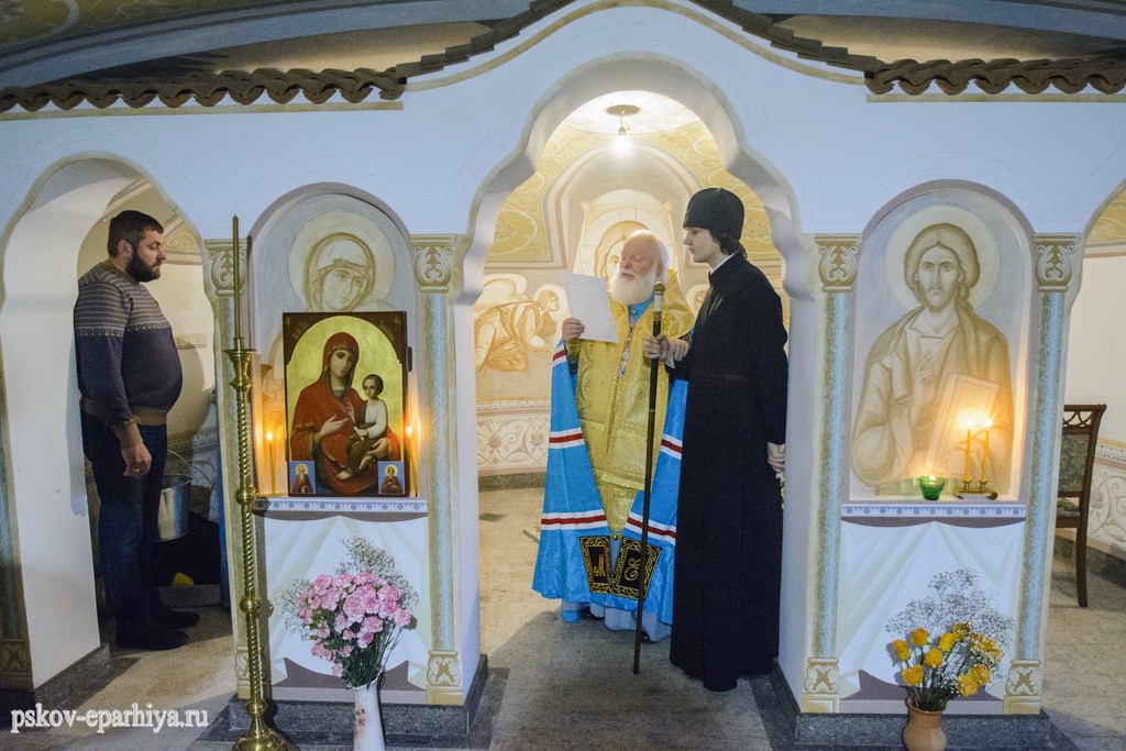 Накануне вечером псковский архипастырь прибыл в Свято-Троицкий Творожковский женский монастырь. Владыку встречала старшая сестра обители монахиня Магдалина (Бусыгина) с насельницами.