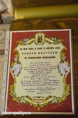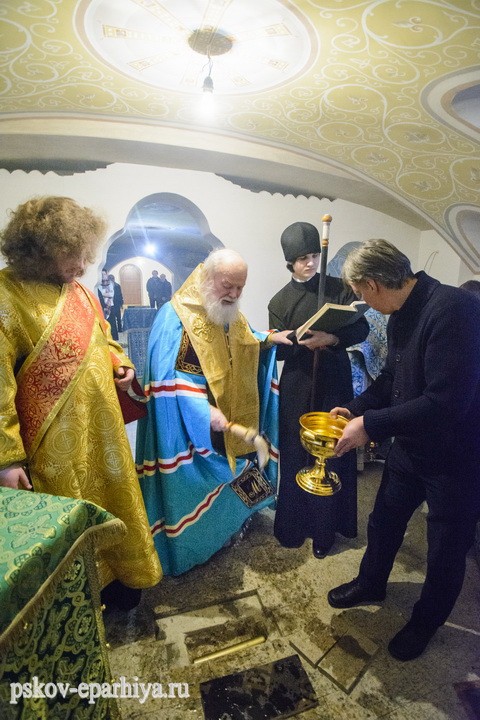 В сам день праздника в приделе Преподобных Феофила и Иакова Омучских Успенского храма Феофиловой пустыни перед началом Божественной литургии Высокопреосвященнейший владыка совершил чин положения закладной грамоты. В ходе молитвословия основание храма было окроплено святой водой, после чего Его Высокопреосвященство вместе с ктитором храма Николаем Костючковым вложил закладную грамоту: