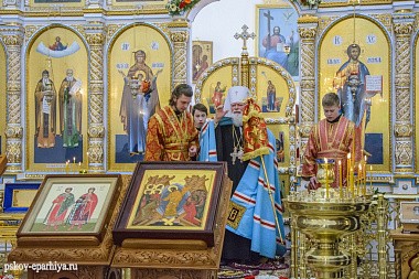 По отпусте Божественной литургии владыка митрополит возглавил праздничный молебен Господу Богу, Пресвятой Богородице, святым князьям Борису и Глебу, преподобному Никандру Пустынножителю и всем святым, от века благоугодившим Богу.