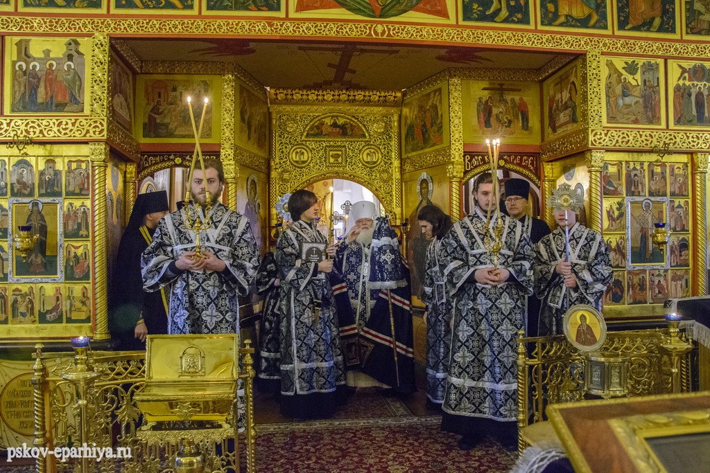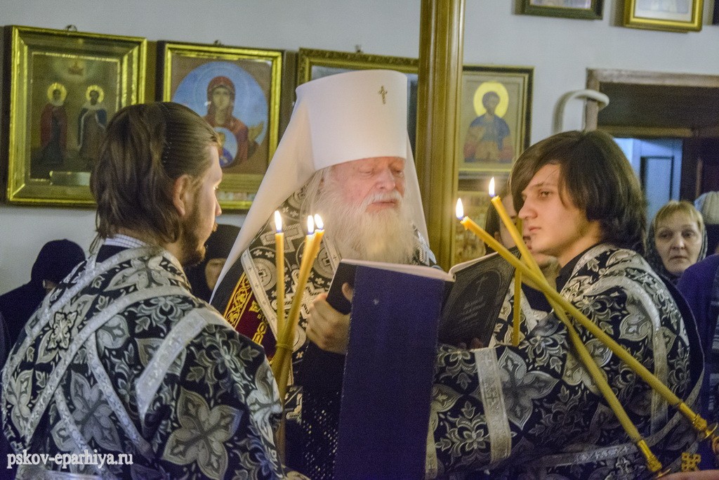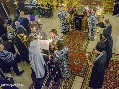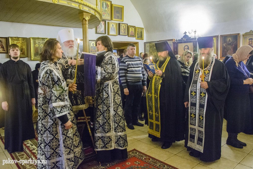 20 февраля 2018 года, во вторник первой седмицы Великого поста, митрополит Псковский и Порховский Евсевий совершил чтение Великого покаянного канона преподобного Андрея Критского в Рождества Богородицы Снетогорском женском монастыре.