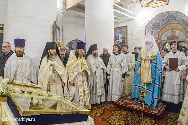 Его Высокопреосвященству сослужили наместник обители игумен Савва (Комаров) с братией обители в священном сане, а также клирики митрополии.