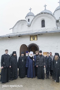 По завершении молебного пения Псковский архипастырь поздравил наместника и братию обители, духовенство и всех молящихся с праздником в честь обретения честной главы Иоанна Крестителя и обратился к молящимся с архипастырским словом: