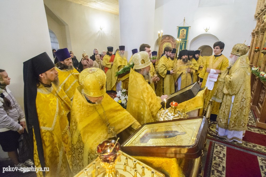 9 октября 2017 года, в день памяти святого апостола и Евангелиста Иоанна Богослова и прославления святителя Тихона, Патриарха Всероссийского, митрополит Псковский и Порховский Евсевий совершил Божественную литургию и праздничный молебен в Иоанно-Богословском Савво-Крыпецком мужском монастыре.