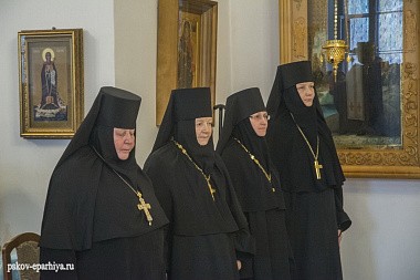 Его Выскопреосвященству сослужили наместники псковских обителей, благочинные церковных округов и многочисленное духовенство митрополии.