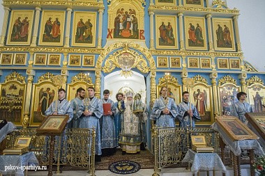 По отпусте Божественной литургии Псковский архипастырь возглавил праздничный молебен, в завершение которого прочел молитву Усердной Заступнице рода христианского, испрашивая Ее защиты и помощи всем молящимся. Затем было пропето величание Пресвятой Богородице и провозглашены традиционные многолетия.