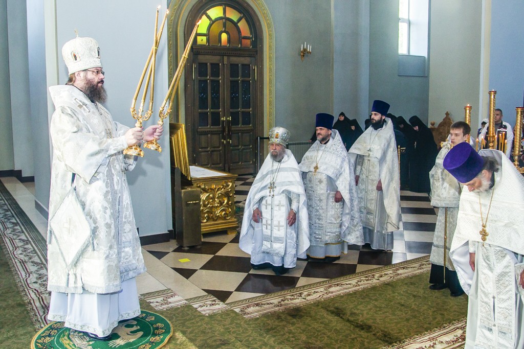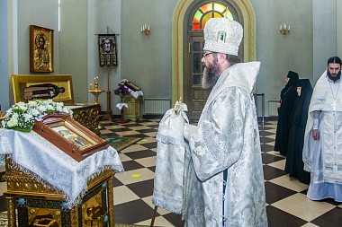 По завершении богослужения митрополит Феодосий обратился к настоятельнице обители игумении Тавифе с сестрами и к прихожанам с архипастырским словом: