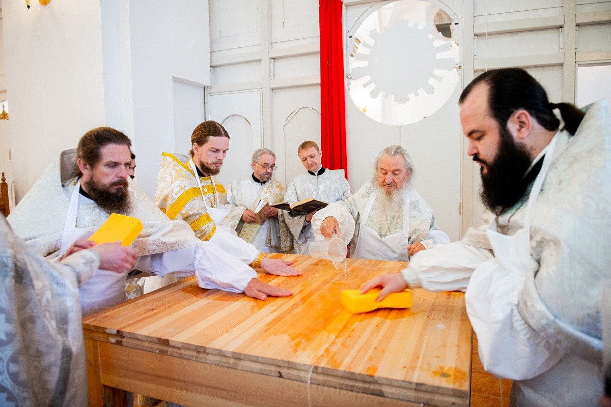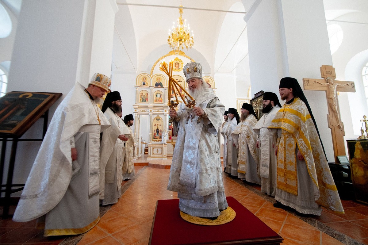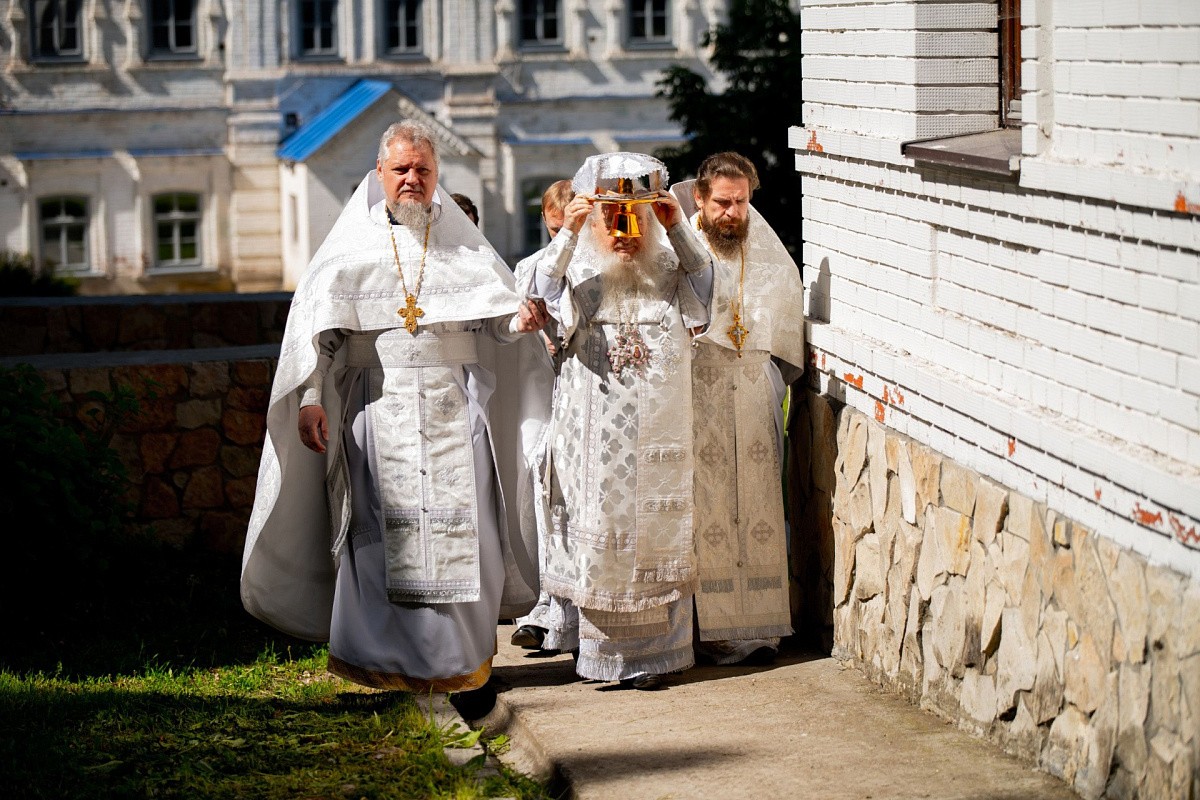 Его Высокопреосвященству сослужили: и. о. настоятеля Макарьевской пустыни иеромонах Амвросий (Горновский), секретарь Казанского епархиального управления протоиерей Владимир Самойленко, благочинный I Казанского округа протоиерей Алексий Чубаков, наместник Казанско-Богородицкого мужского монастыря игумен Марк (Виленский), настоятель Введенского Кизического мужского монастыря игумен Пимен (Ивентьев), наместник Свияжского Богородице-Успенского мужского монастыря игумен Симеон (Кулагин), братия Макарьевской обители в священном сане.
