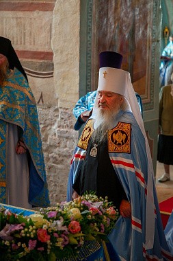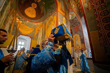 В завершение богослужения правящий архиерей поздравил наместника, братию и всех верующих с престольным праздником древнего собора Свияжской обители.