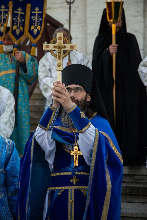 По заамвонной молитве был совершён молебен ко Пресвятой Богородице и крестный ход вокруг храма. После молитвенного шествия в храме перед Плащаницей Пресвятой Богородицы были пропеты тропарь, кондак и величание Царице Небесной.