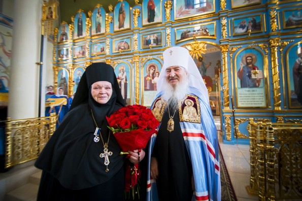 Вступив на путь монашеского служения и восприняв Крест Христов как знамение Божией силы, как опору в трудах, Вы вносите свой весомый вклад в возрождение святынь и церковной жизни на земле Елабужской. Являясь подражательницей подвигу святых апостолов, с особой материнской заботой Вы проявляете попечение о сестрах святой обители, даете им мудрые наставления, заботитесь о ближнем, принимаете странников и обездоленных, совершаете подвиги поста и молитвы.