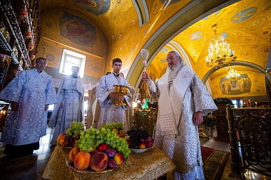 По окончании Литургии по традиции владыка Феофан совершил освящение плодов нового урожая.