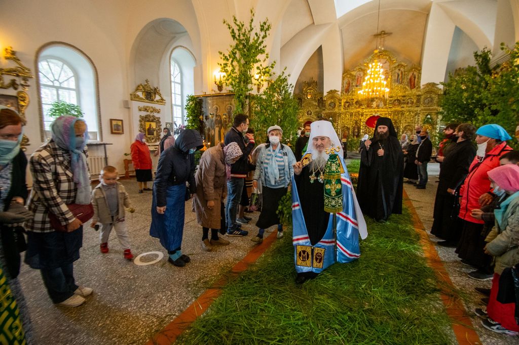 Согласно инструкции первого этапа выхода храмов и монастырей Казанской епархии из режима противоэпидемических ограничений участники богослужения стояли в Троицком соборе и на территории перед храмом на полутораметровой дистанции друг от друга. Для удобства верующих на монастырской площади была организована видеотрансляция богослужения, а на полу нанесена разметка.