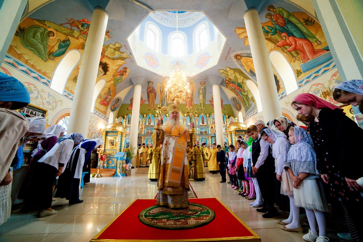 За богослужением была возглашена заупокойная ектения о жертвах террористических актов, память которых вспоминается в начале сентября, в годовщину Бесланской трагедии.