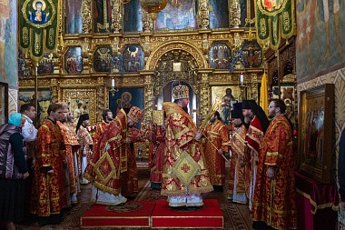 В Троицком соборе обители владыкам сослужили: наместник обители игумен Петр (Ерышалов), игумен Дмитрий (Нетёсин), протоиереи Игорь Шашков, Андрей Ирзаев и Максим Рихтер, иеромонахи Филипп (Дюкарев), Тимон (Яковлев) и Никон (Касярум), иерей Александр Поликарпов.