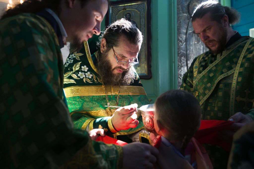 По запричастном стихе иеромонах Михаил (Абрамов) произнес проповедь перед молящимися.