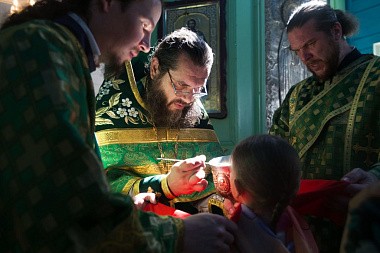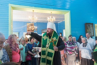 Высокопреосвященному владыке сослужили: благочинный церквей Буйского района протоиерей Аркадий Климов, настоятель Благовещенского храма с. Ферапонт иеромонах Михаил (Абрамов), иеромонах Адриан (Киселев), иерей Андрей Куков, духовник обители иерей Вил Кенжибаев.