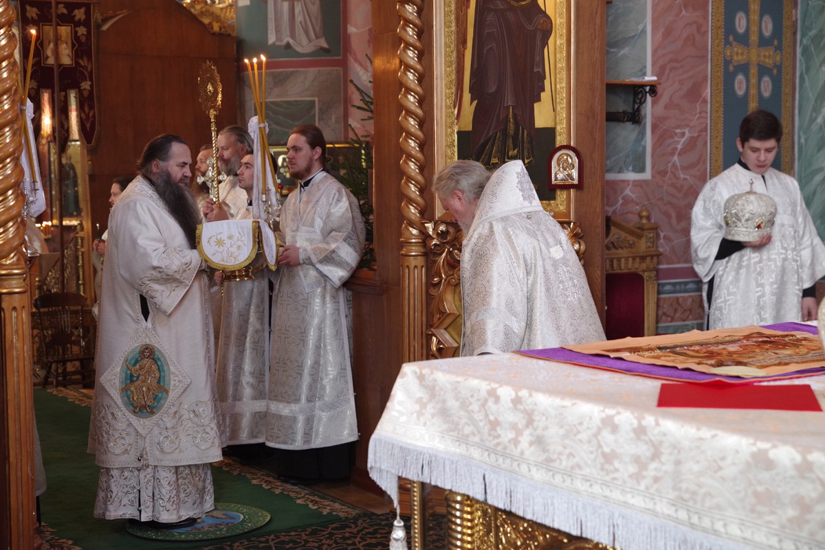 За богослужением вместе с многочисленными паломниками и прихожанами молились игумении женских монастырей и настоятельницы архиерейских подворий епархии.