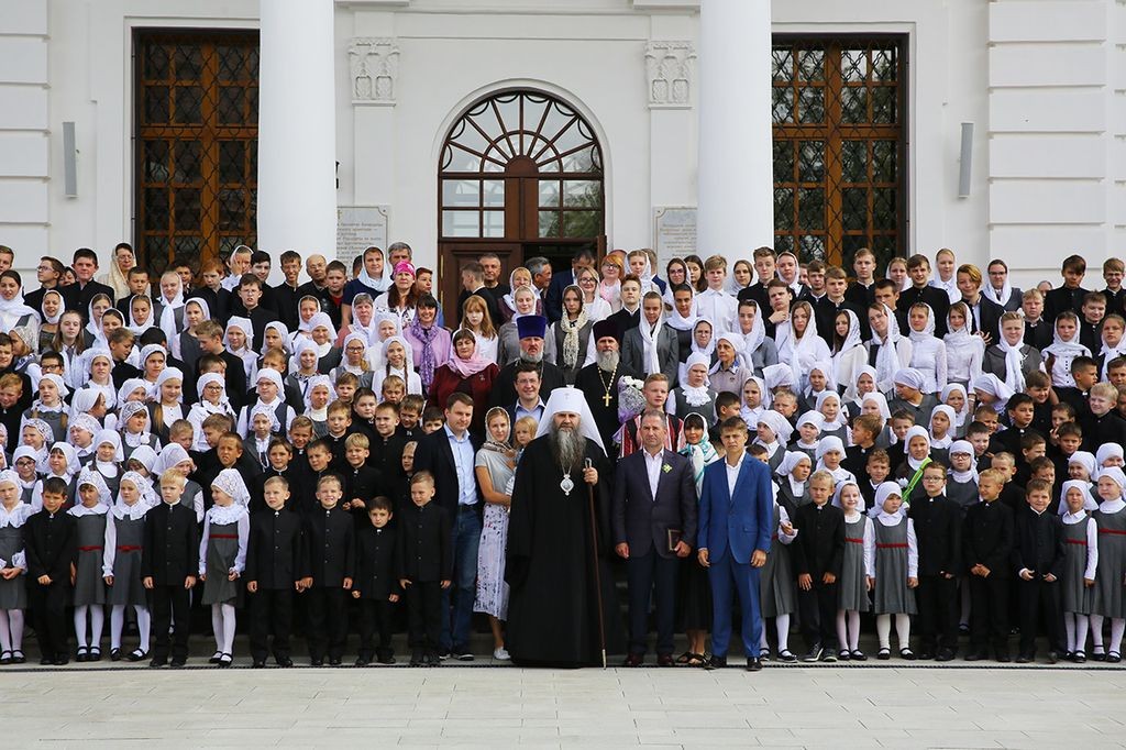 Молебен завершился общим фотографированием учеников православной гимназии с владыкой, губернатором и высокими гостями Сарова.