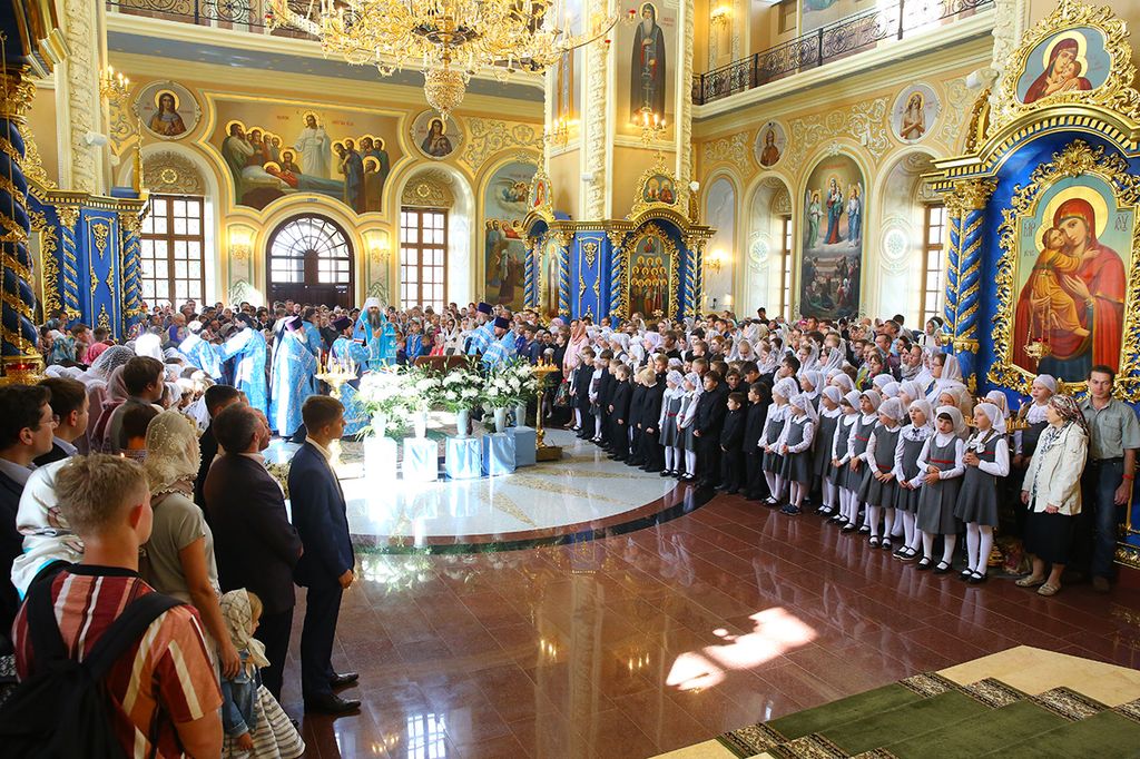 За богослужением вместе с многочисленными прихожанами молились учащиеся и преподаватели православной гимназии имени преподобного Серафима Саровского.