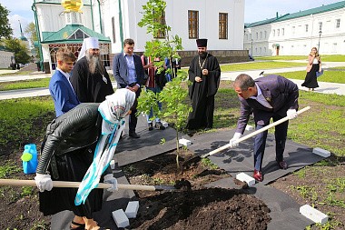 В завершение гости посетили келию преподобного Серафима Саровского в храме, освященном в его честь, и посадили деревья на территории обители.