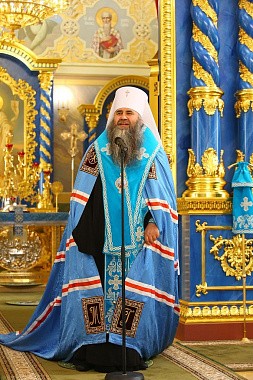 «Дорогие братья и сестры! В начале нового учебного года мы с вами собрались в городе Сарове под сенью благословенного Успенского собора Саровской пустыни с молитвой ко Господу, чтобы ваши учение, образование и просвещение были успешными. Дело образования многосложное и трудное, требующее усердия учителей, заботы родителей и старания детей. Пускай Господь Своей милостью покрывает ваши немощи, дает вам крепость знаний, усердие, трудолюбие. А когда люди живут в согласии с Богом, у них наступают мир и согласие, всё благоустраивается и благоукрашается. О приобретении мирности духа просите помочь преподобного Серафима, Саровского и всея России чудотворца, который оставил нам духовное наследие о том, что истинный смысл жизни на земле – это стяжание Духа Божия, стяжание Духа мирна. И я рад, что в эти святые дни мы собрались с вами в Успенском храме».