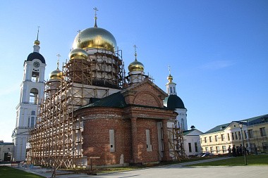 На территории Свято-Успенского мужского монастыря правящего архиерея встречали главный инженер обители Андрей Столяров, директор ООО «Региональный инженерный центр» Юрий Коваль, руководитель иконописной мастерской «Ковчег» Алексей Анциферов, директор строительной фирмы «Даниилов град» Александр Третьяков и другие представители подрядных организаций.