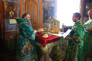 Правящему архиерею сослужили благочинный Саровского округа протоиерей Александр Долбунов, старший священник монастыря протоиерей Игорь Покровский и другие клирики Нижегородской епархии.
