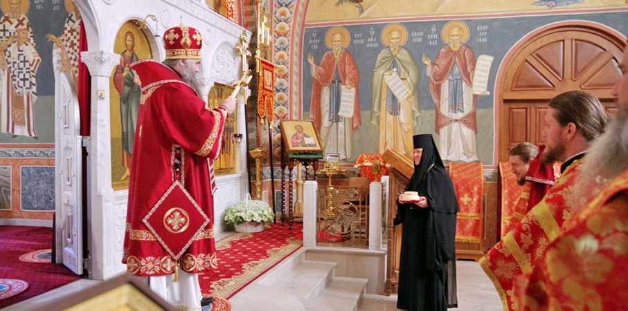 По окончании Божественной литургии митрополит Георгий поздравил игумению Сергию (Конкову) с юбилеем и подарил букет роз: 26 мая настоятельнице Дивеевского монастыря исполнилось 75 лет. Игумения Сергия поблагодарила правящего архиерея за теплые слова.