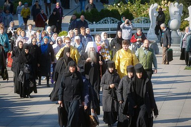 На богослужении вместе с паломниками и прихожанами молились настоятельница монастыря игумения Сергия (Конкова) и сестры обители.