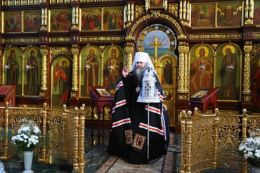 Обратившись к собравшимся в храме со святельским словом, глава Нижегородской митрополии поздравил их с днем памяти преподобного Назария, который преставился 8 марта 1809 года и был погребен в Сарове за алтарем соборной церкви во имя Иконы Божией Матери «Живоносный Источник».