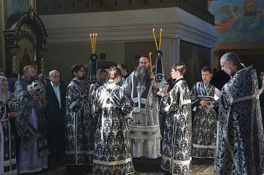 Литургию Преждеосвященных Даров в храме в честь Преподобного Серафима Саровского возглавил митрополит Нижегородский и Арзамасский Георгий.
